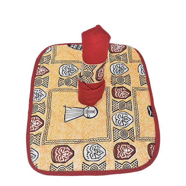 Decorative fabric mainly used for wiping the mouth and fingers while eating. These fabric napkins are meticulously handmade by Rwandan women. out of imported cotton fabrics and designed by creative local tailors.