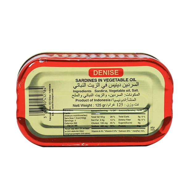 DENISE SARDINES IN VEGETABLE OIL 125G