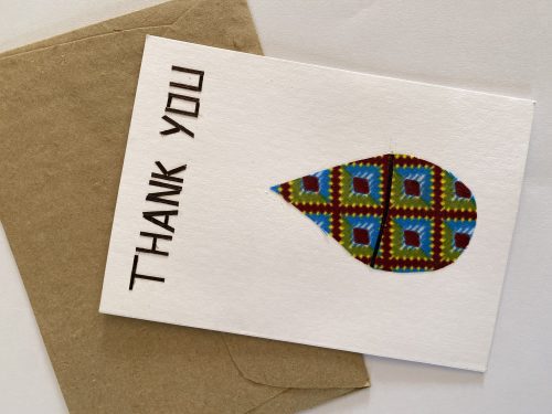Fun fact: The banana leaf used for the cards is harvested from trees which are still growing around artisan homes in Rwanda. And the remnant fabric is from beautiful dresses sewn by local seamstresses.