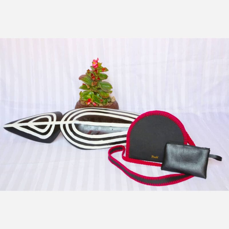 Red & Black Leather and Thread Handbag by Posh Creative 15,000 RWF