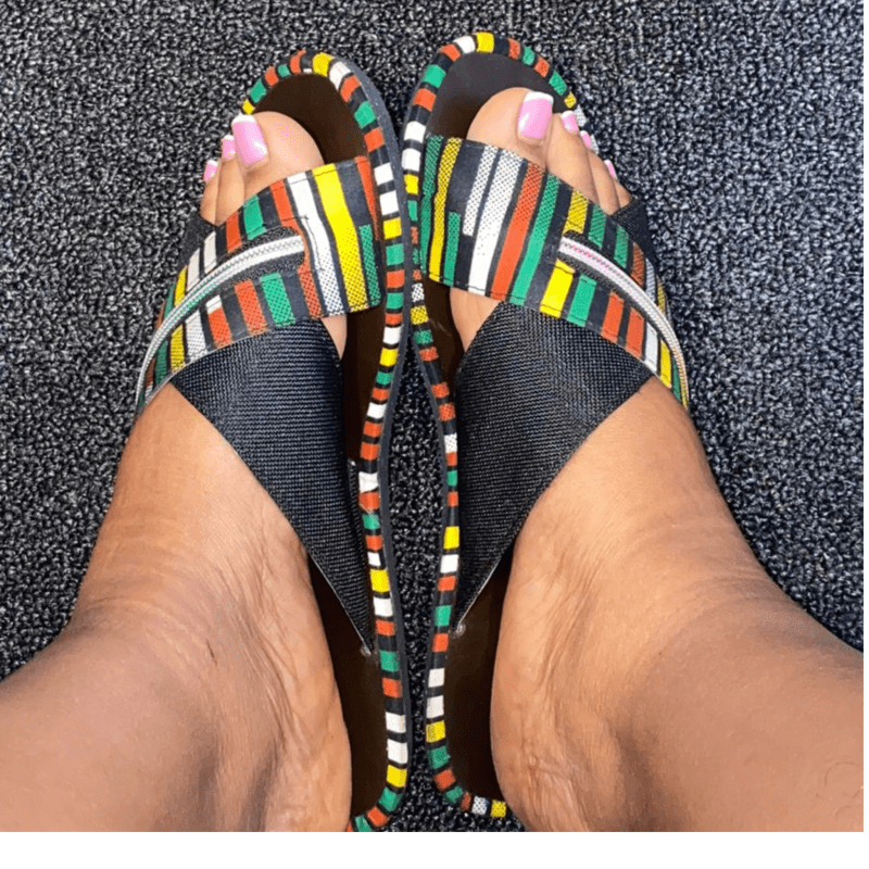 Step into vibrant elegance with our Kitenge sandals, where tradition meets contemporary style. These sandals showcase the timeless beauty of Kitenge fabric, characterized by bold patterns and vivid colors. Each step is a celebration of African culture and craftsmanship, as the sandals are intricately adorned with handcrafted Kitenge fabric straps, adding a burst of color and flair to your ensemble. Comfortable and chic, our Kitenge sandals are a fusion of fashion and cultural identity, allowing you to make a statement with every stride. Elevate your footwear collection with these unique, eye-catching sandals that bring the spirit of Africa to your feet.