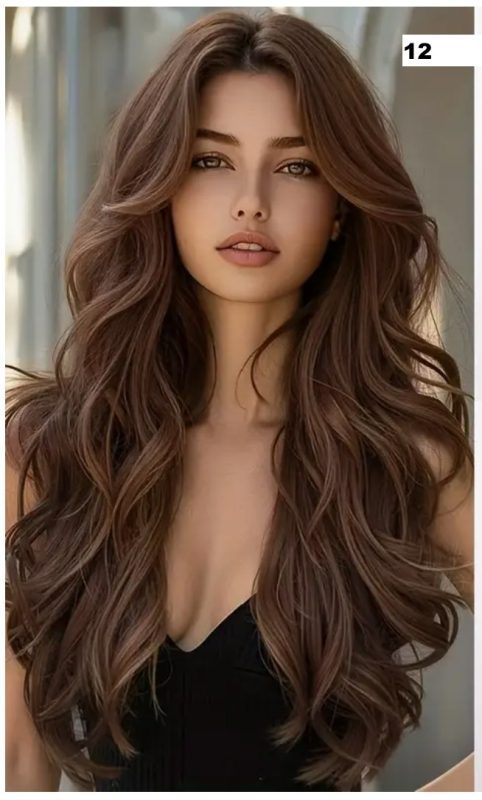 RWF 47000Long Brown Curly Wig with Bangs for Women