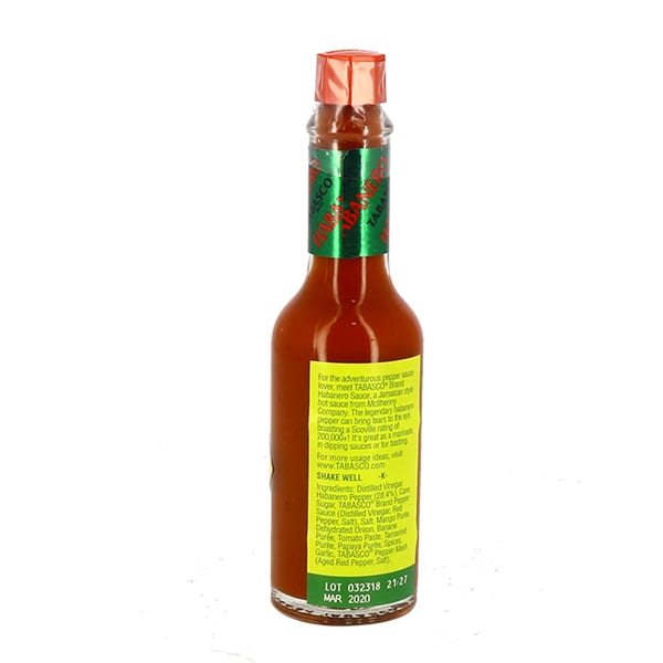 Distilled vinegar, habanero pepper, cane sugar, tabasco brand pepper sauce, salt, mango puree, dehydrated onion, banana puree, tomato paste, tamarind puree, papaya puree, spices, garlic, tabasco pepper mash.