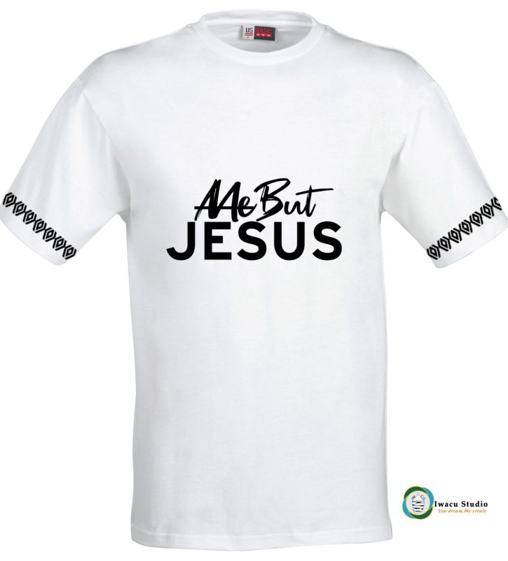 Original price was: 12,000 RWF.10,000 RWFCurrent price is: 10,000 RWF.Me But Jesus short sleeve tshirt by iwacu studio