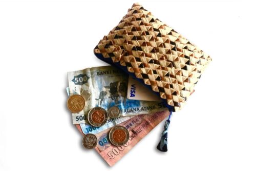 - Artisans craft our coin purses using natural palm and banana leaves.