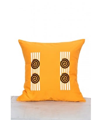Soft Cotton Cushion Cover – Yellow with Black & White Ring Prints