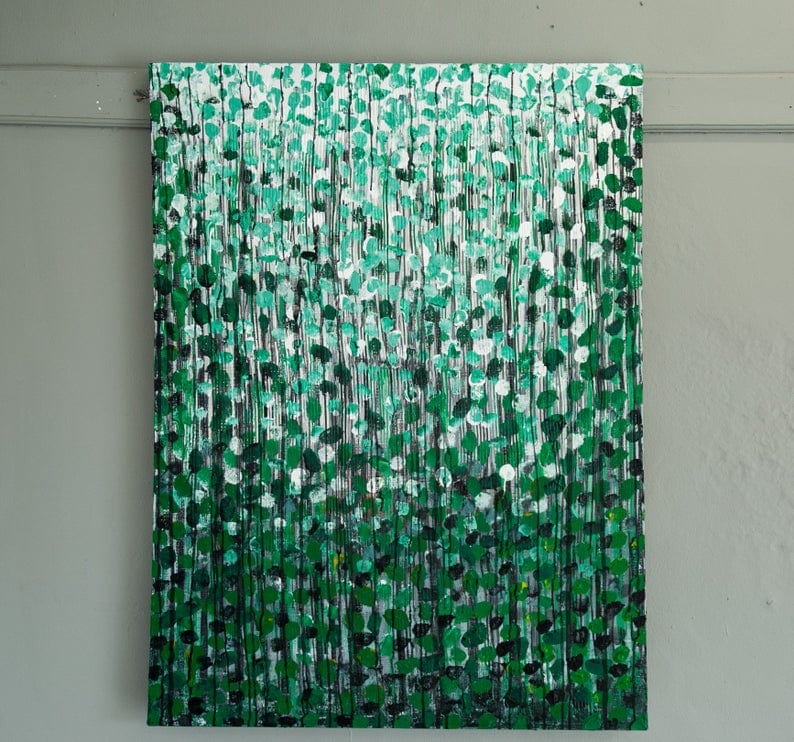 This painting is a celebration of health and wealth, symbolized by the bright green colour. Those are gifts that we enjoy daily from nature.A painting from 2018Acrylics on canvasThe painting is displayed at the Inema Art Center in Kigali, RwandaBig size paintingFree shipping (I ship the canvas with DHL without the frame)