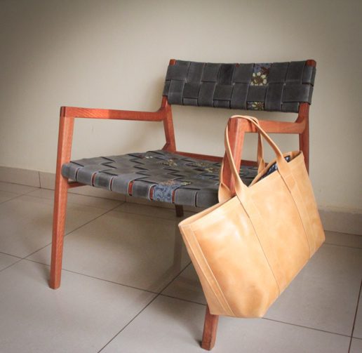 Red Eucalyptus, Tan Leather and Kitenge Chair by Inwood