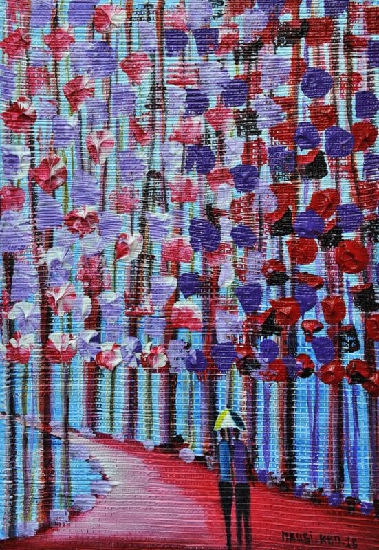 Romance, a painting from Romance Series that I pained in 2018Acrylics on canvasThe painting is displayed at the Inema Art Center in Kigali, RwandaSmall size paintingFree shipping (I ship the canvas with DHL without the frame)