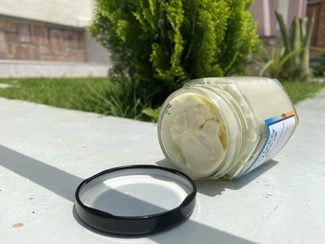 Our 4 oz jar of Shea Baby (whipped shea butter) is smooth and creamy with a drop of honey.