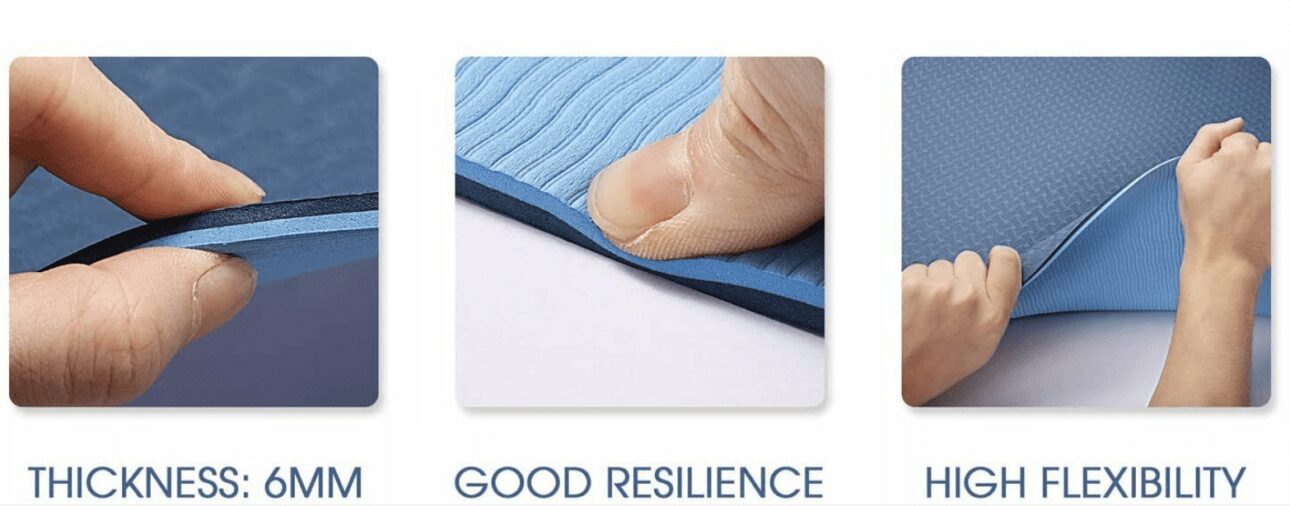• This workout mat has double-sided non-slip surfaces. Wavy undersides make excellent traction on the floor. It unrolls pretty flat and stays put. Special textured surface prevents your hands and feet from sliding when you sweat on it.