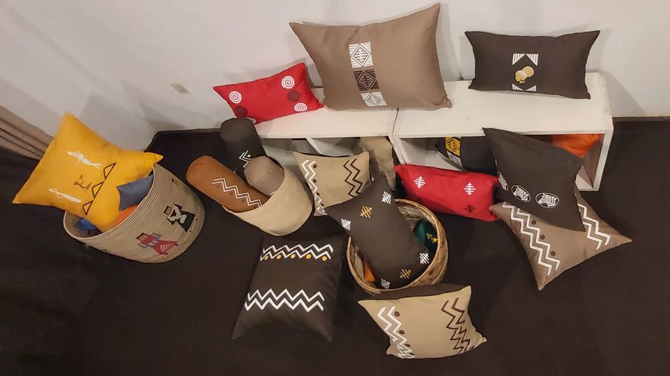 Soft Cotton Cushion Cover - 2 pieces - Red & Orange with Black & White Prints
